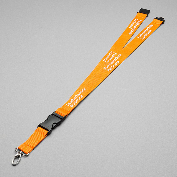 Damit Du Deinen Schlüssel oder Dein Namensschild immer um den Hals tragen kannst, gibt es unser Schlüsselband. Natürlich in FH-Orange mit weißem Druck. Es hat einen praktischen und stabilen Egg-Hook-Verschluss und einen abnehmbaren Kunststoffclip. Für Deine persönliche Sicherheit hat es einen Sicherheitsclip im Nacken. Zum Schutz der Umwelt ist er aus Recyclingmaterial.